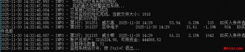 此版本为实现通达信所有预警通过MALHJ助手与帐户互联,实现无缝互联交易。 MALHJ股票助手功能如下: 1.实现通达信预警自动下单 2.实现异常自动退出, 3.实现预警文件初始化, 4.只读取最新一条预警下单。 5.自动每天更新预警文件。 6.实现非交易时间暂停监控。 7.自动识别代码名称预警价格,限价交易。 8.自动识别帐户异常退出。 9.实现关键字买卖量化交易动作 更新说明: 20251130 修复异常闪退。 更新时间识别出错问题。 MALHJ助手的效果视频: https://www.toutiao.com/video/7577719891952681512/ 设置模拟与实盘快速实现的方法和步骤细节视频: 抖音视频讲解: https://www.douyin.com/user/MS4wLjABAAAAAfIPzzVL8PoW5gJdE3mZLUjy_-mLksJTPXIBM3kub9s?modal_id=7578362217972714802 头条视频讲解: https://www.toutiao.com/video/7578363610066354707/ MALHJ股票助手综合全功能专业版的详情: http://www.malhj.com/read-217.html MALHJ股票免费版的下载地址如下: 下载前请认真阅读【风险揭示书】,选择即代表您完全认可协议的内容。 |